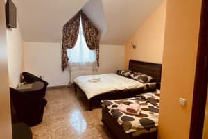 Гостиница "Hotel" расположена на красной ветке метро, расстояние до центральной части города составляет 11 км. Недалеко от отеля находится супермаркет «АТБ». В нескольких шагах от гостиницы есть автобусная остановка. Вблизи "Hotel" также находится Торгово-развлекательный центр «Караван». Номерной фонд отеля состоит из пяти комнат класса Стандарт. Апартаменты оснащены кондиционером, холодильником, электрочайником и приспособлениями личной гигиены. На территории "Hotel" есть бесплатный вай-фай и парковочные места, которые находятся под охраной.